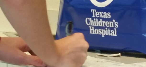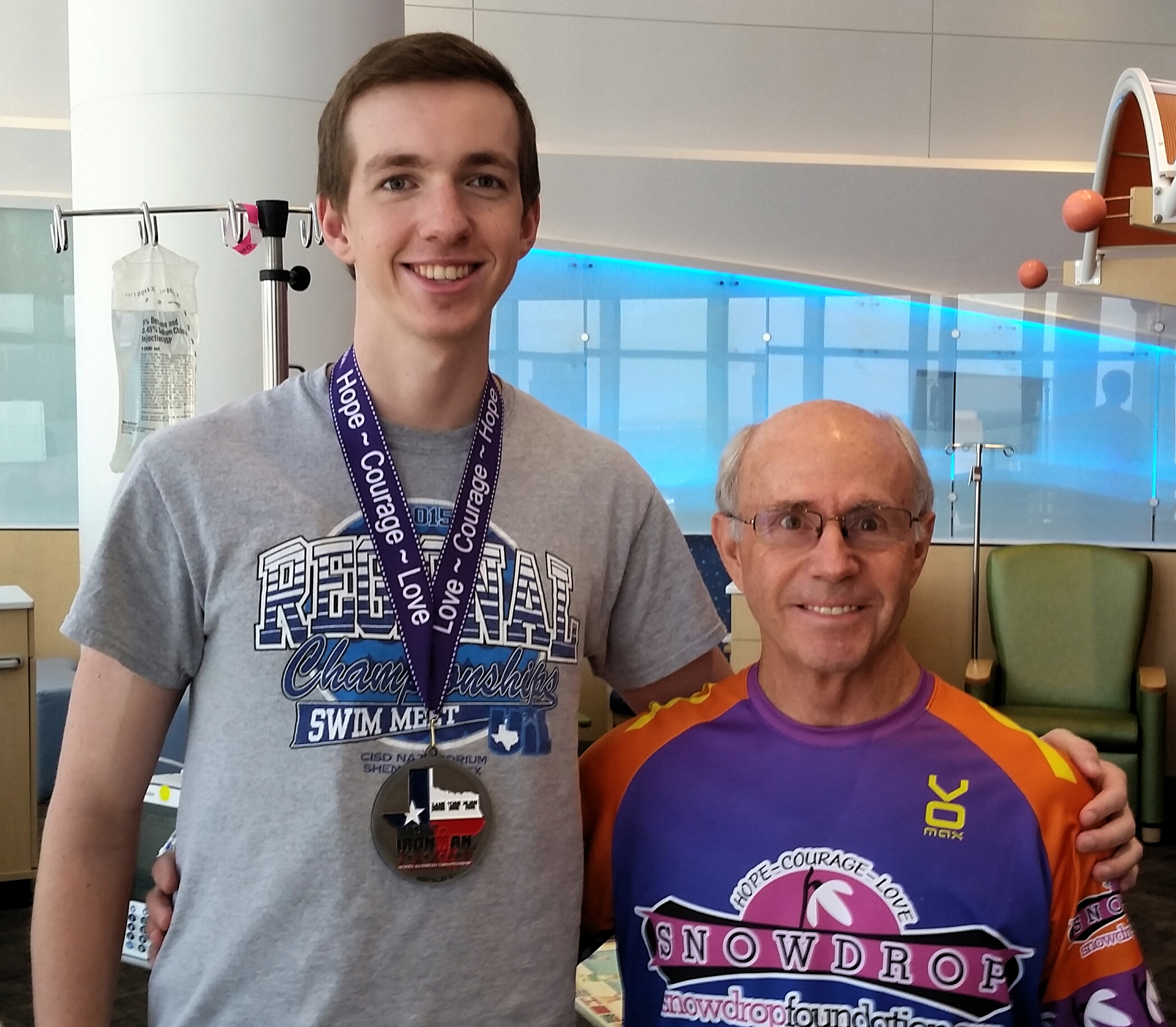 While waiting in clinic for the time to go down to surgery Matthew had a visitor. Larry from the Snowdrop Foundation gave Matthew a medal that an Ironman Competition winner donates to be given to kids going through cancer treatments at TX Childrens Hospital. They call it Bling For Bravery!