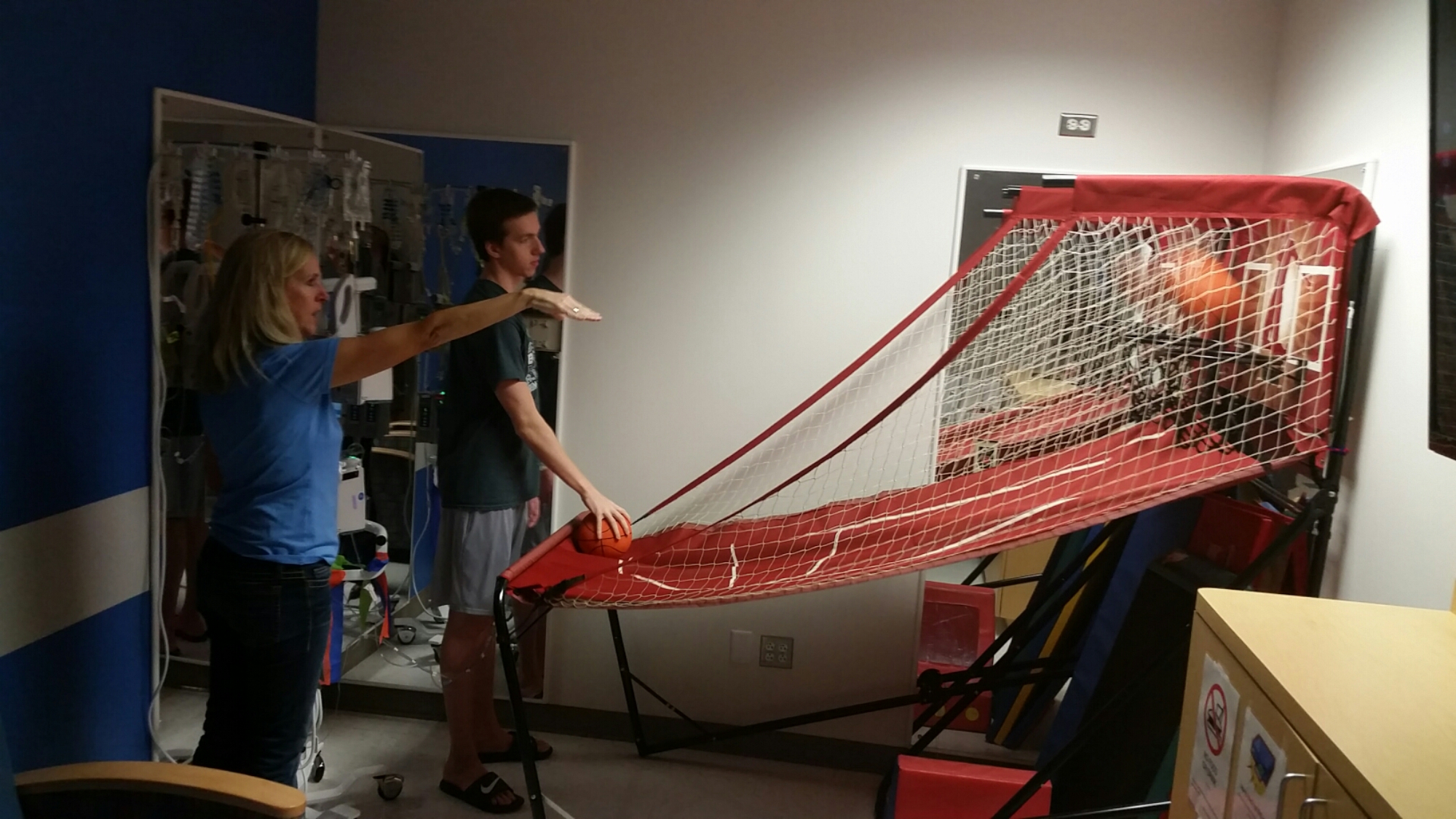 The actual Stem Cell Infusion only took about 15 minutes. Afterwards, like after any blood product infusion, they monitor you closely for about 4 hours and then, if you are incident free, you are back to the normal monitoring and whatever activities you can think of to do that your doctor will allow. Matthew wanted to shoot some hoops with mom!